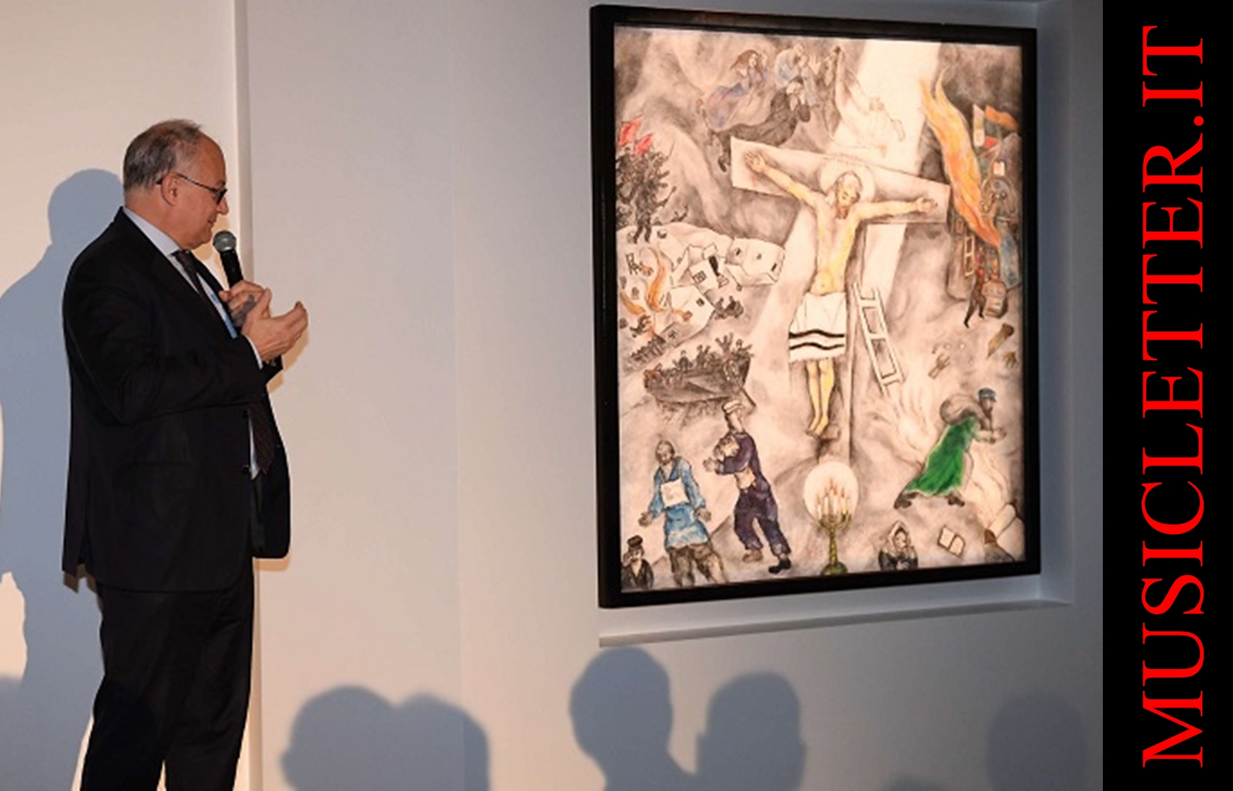 La Crocifissione Bianca di Marc Chagall, capolavoro del 1938, è esposta per la prima volta in Italia. Visita la mostra gratuita al Nuovo Museo del Corso, Palazzo Cipolla, a Roma, dal 27 novembre 2024 al 27 gennaio 2025. Un evento unico che unisce arte, fede e memoria storica.