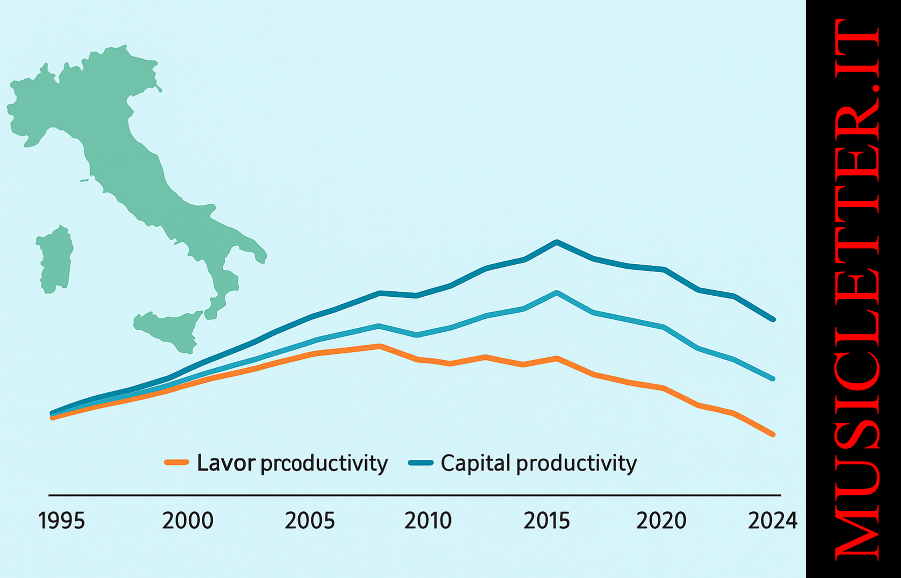 Le misure di produttività rappresentano uno strumento centrale per valutare l’efficienza del sistema economico e la sua capacità di crescere nel tempo. I dati diffusi dall’Istat relativi al periodo 1995-2024 consentono di analizzare l’evoluzione della produttività del lavoro, del capitale e della produttività totale dei fattori (PTF), con un focus particolare sugli andamenti più recenti. Nel 2024, pur in presenza di un rallentamento rispetto all’anno precedente, la dinamica della produttività resta complessivamente negativa.