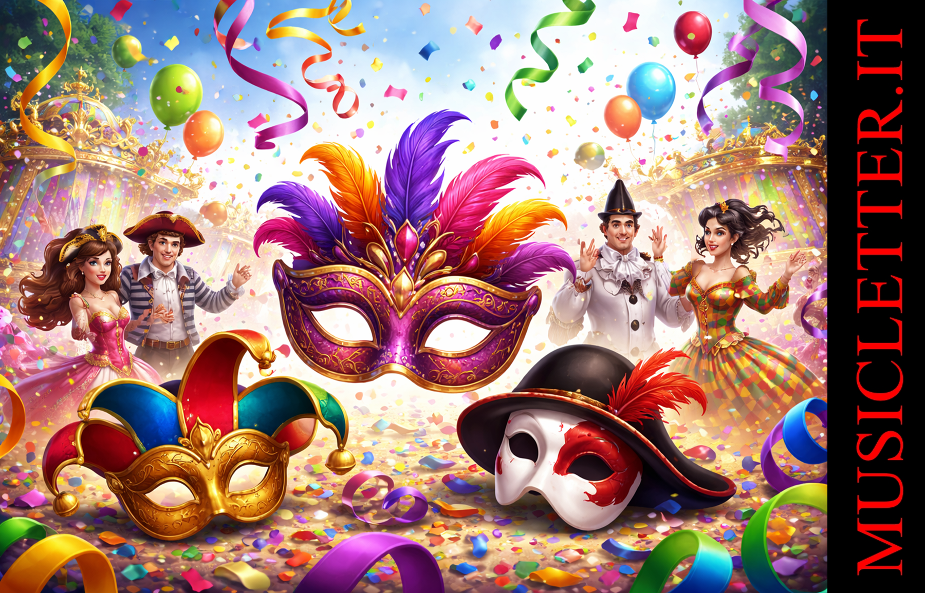Le maschere sono tra gli elementi più suggestivi del Carnevale. Nacquero a Venezia nel XIII secolo e si diffusero in Italia e in Europa, anche grazie al teatro dell’arte. Permettevano di invertire ruoli sociali e celare l’identità. Ogni regione d’Italia ha le sue maschere tipiche, da Gianduia in Piemonte a Pulcinella a Napoli, fino a Pantalone e Colombina a Venezia. I bambini oggi continuano a travestirsi, evocando la magia del passato.
